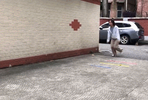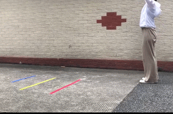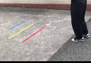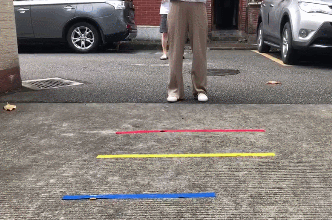 由於經費不足,大院也沒有沙池,只能帶着三卷紅黃藍的水電工膠帶,去大院附近空曠的水泥地,草草的布了一個有刻度的跳遠平台,再叫上埋頭寫稿的幾位院辦出來透透氣,運動一下: