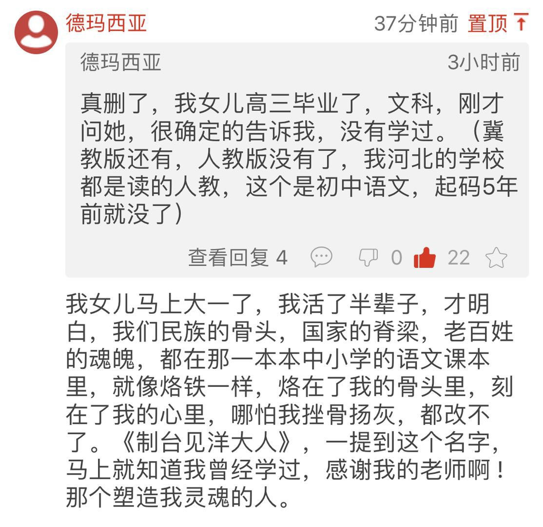 當年我上中學的時候,課本里有這一篇。據傳現在課本里已經刪掉了,向大家求證一下是不是真的刪了?