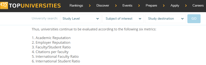 而且大家不要覺得只有QS排名一家是這樣的,之前和QS合作的Times Higher Education World University Rankings也這樣,沒和它合作過的U.S. News & World Report Best Colleges Ranking也把留學生比例作為一個重要指標。