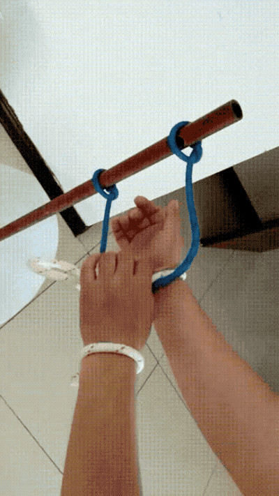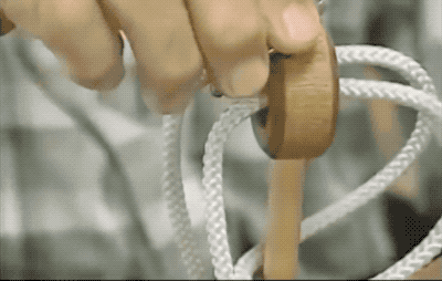 在木條上打3個洞,然後把繩子和圓環按照上面圖片裏的樣子組裝好,就可以開始玩啦。這個版本其實和一開始介紹的那個遊戲是一樣的道理,解法也是類似的。