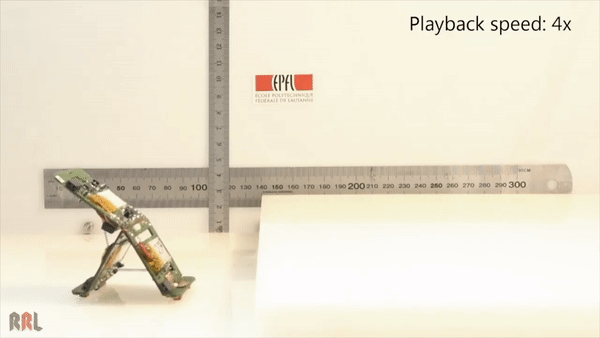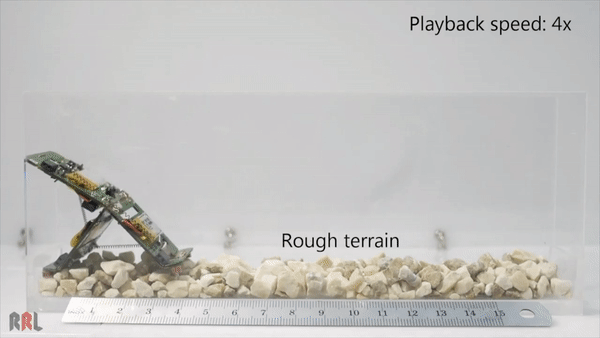 如果這個過程發生在鉸鏈底部,Tribot就會垂直上跳。如果這個過程發生在鉸鏈兩側,機器人則會做出類似立定跳遠的動作,這也是它跨越障礙的主要方式。當然啦,結合兩種方式,以翻筋斗的動作來跨越複雜地形對於Tribot也並非難事。