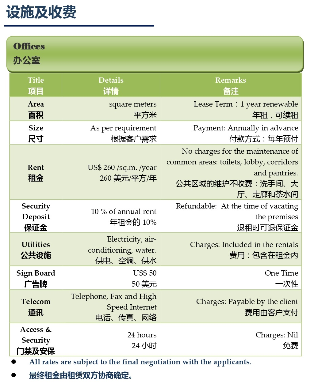 瓜達爾自由區設施及收費列表,來源:中國貿促會境外產業園區信息服務平台。