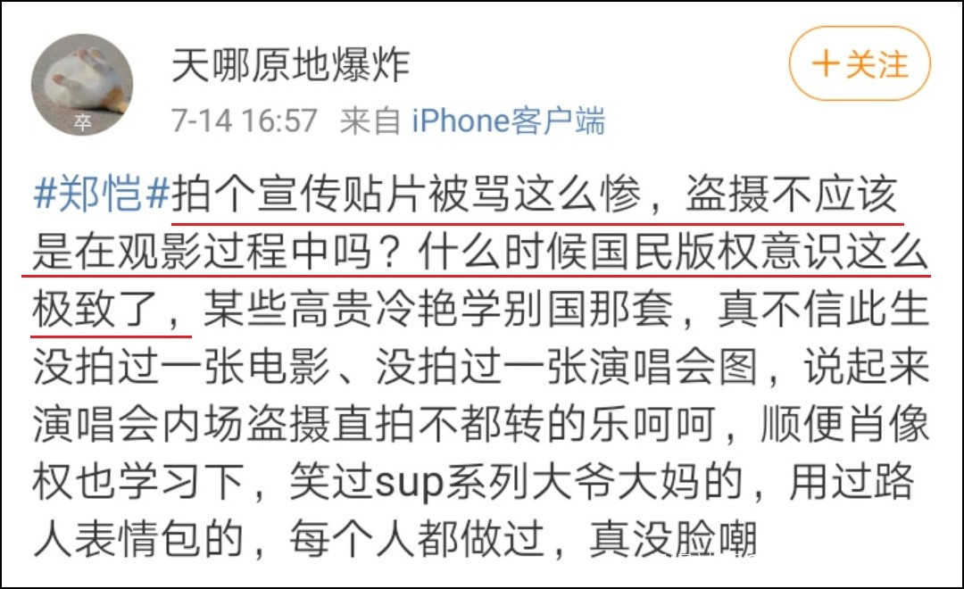 在這裏,就有網友表示,在無商業用途、不涉及劇透的情況下,只是對畫面進行圖片拍攝反而還能給電影帶來更多的流量,不是嗎?尤其是鄭愷是一個公眾人物。