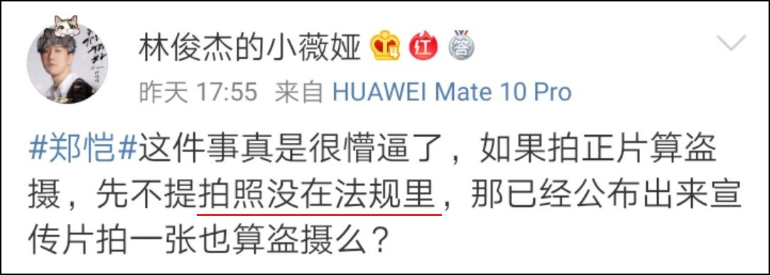 眼看着“拍照≠錄像”這一論據不能成立後,支持鄭愷的網友又開始強調: