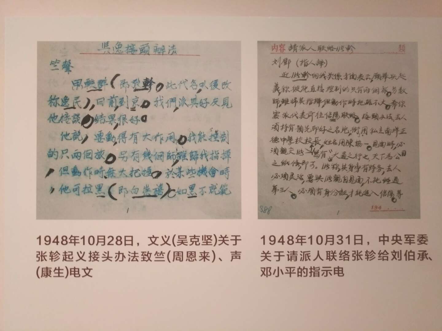 (張起義後,待遇不錯,好像加入了四野,依舊是正職。本來展覽室有對張的任命文件,我沒拍照。而且張後來還代表四野在50年代某一次全國代表大會上講話。)
