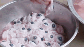 烤完蠶的一生,人們還是對大補非常鍾情。民間流傳着一句老話,“吃哪補哪”,《人生一串》裏,最難下口的串兒,莫過於烤羊蛋、爆漿豬眼,烤腦花。