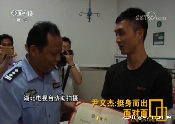 尹文傑:沒有想過,我只是感覺我確實在流血,血流得比較多,沒有想到我的傷會很嚴重,所以我還是必須要把他制服,把他抓住。因為可能那個時候,我再多拖一分鐘的話,就會有路人幫我求救,就會有民警趕過來,所以我必須要多拖住他一會兒。