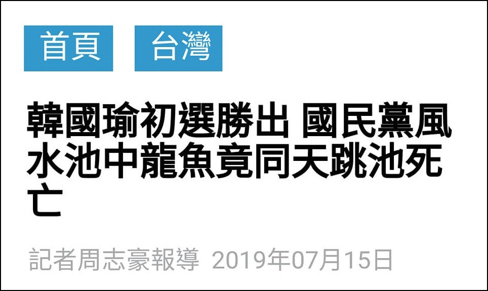 完蛋了!韓國瑜初選勝出,國民黨風水池死了條魚_風聞