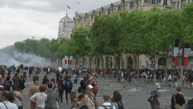法國BFM電視台15日報道稱,警方向其中一些戴頭巾的抗議者投擲催淚瓦斯,而後者試圖利用金屬路障、垃圾箱和其他破碎物品堵截道路。從電視報道中可以聽到幾聲巨響,以及正在向警方投擲物品、發出噓聲並點燃垃圾箱的抗議者。