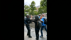 拍攝視頻的目擊者告訴記者,抗議者和警察動手的原因在於,一名女子被警察噴了胡椒粉噴霧。