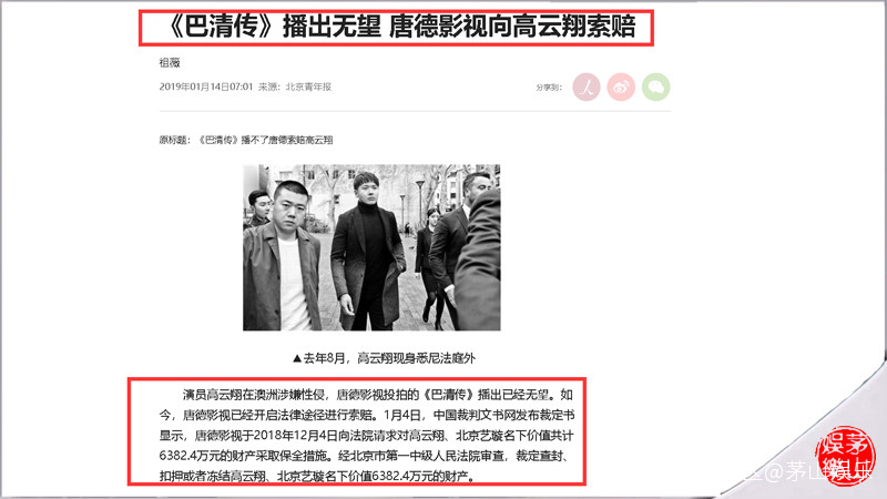 自2018年3月26日高雲翔與王晶在澳洲悉尼一酒店涉嫌性侵華裔女性電視製作人後,不光是其妻子董璇備受關注,投拍了高雲翔主演《巴清傳》的唐德影視同樣受到巨大關注和影響。當時,受高雲翔事件的影響,另一主演范冰冰為了讓該劇能順利開播,還曾動員當時的未婚夫李晨替代高雲翔補拍,去年5月16日曾有網友在網上曬出幾張李晨范冰冰正在重拍《巴清傳》的路透照,李晨與范冰冰身穿戲服與眾主創人員合影。