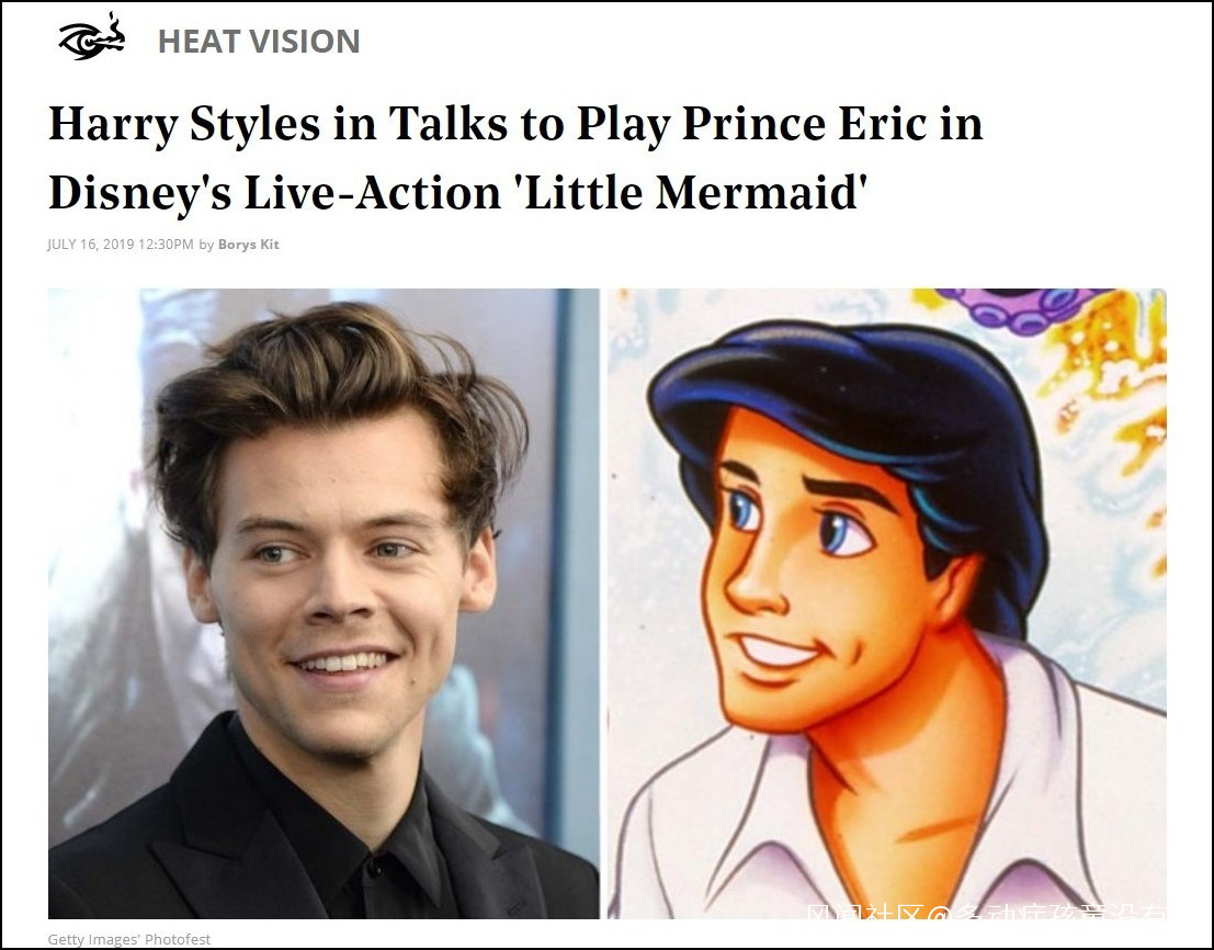THR、collider等多家媒體報道:英國偶像團體One Direction前成員、現年25歲的哈里·斯泰爾斯(Harry Styles,暱稱哈卷)正在早期商談,有望出演迪士尼真人版《小美人魚》男主角埃裏克王子。