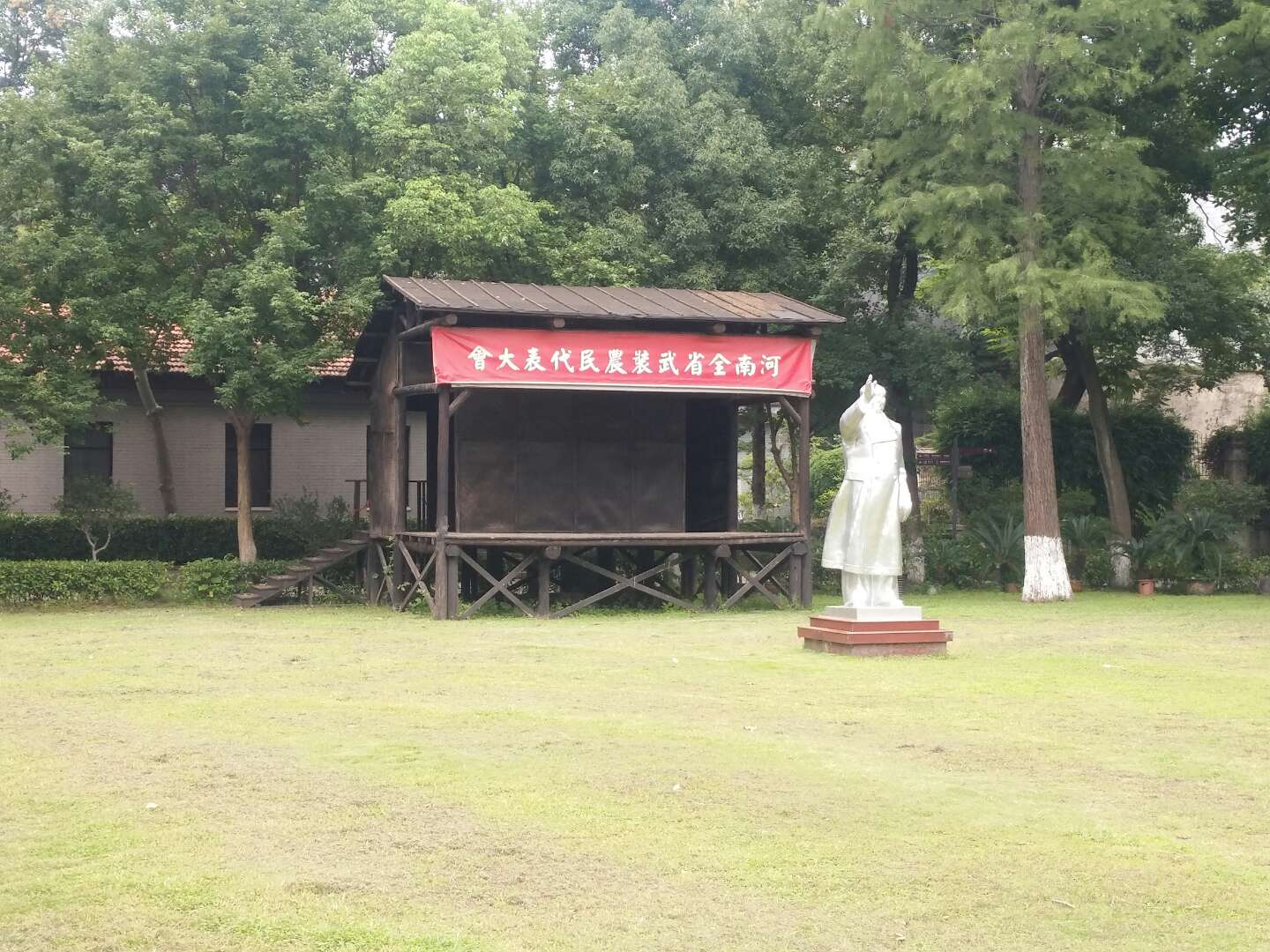 上圖是個大講台,開大會、動員用的。(主席石像身後,我大河南強勢入鏡。)