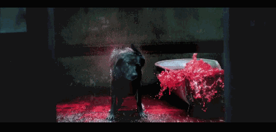 犯人潛意識裏非常陰暗潮濕,導演通過慢鏡頭展示了這個場景:噴湧鮮血的浴缸旁,一隻黑狗抖落着身上的血水,畫面實在太過血腥暴力。