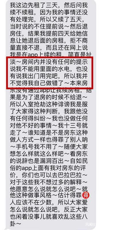 同時,房東的帖子中稱王可惡意浪費水電,葉珈睿認為法律上對此並無明文規定,只是一個道德層面的問題,而損毀財物則明確構成了民事侵權。