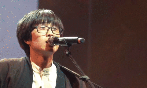 這個戴着黑框眼鏡的歌者來自大涼山,多用彝族語言唱歌。
