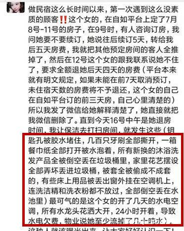 女房客為報復浪費民宿幾十噸水 房客:我不覺得有錯!_風聞