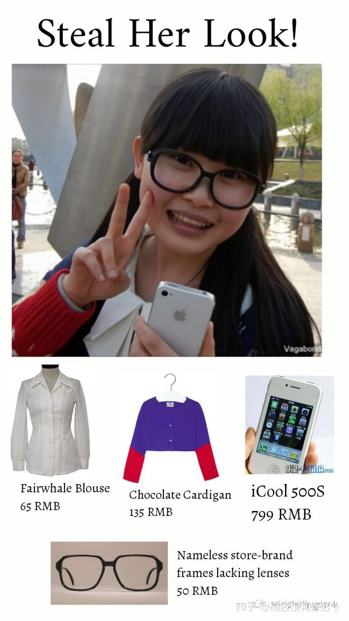 一個標準的rainy配備,是65塊錢的襯衫,135塊錢難看的毛衣,假蘋果,當然還有50塊錢沒牌子的破眼鏡