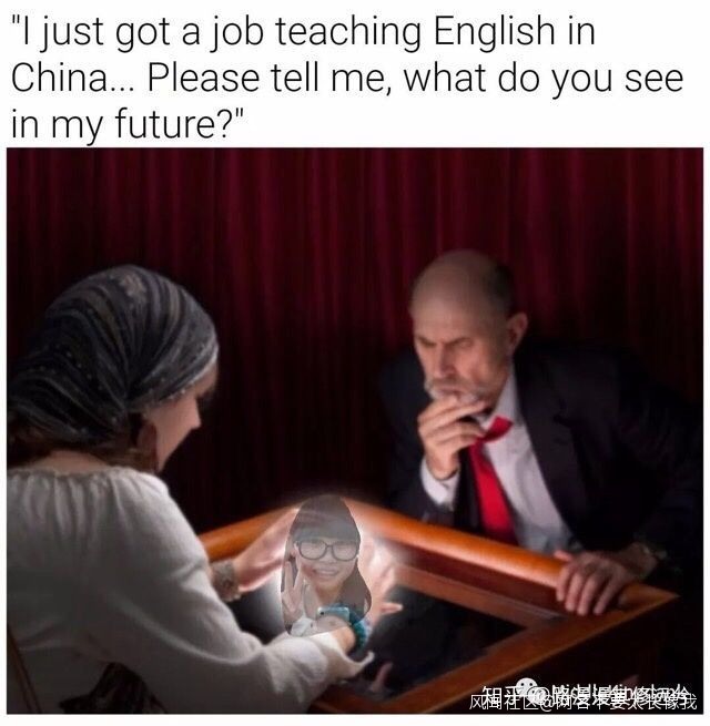 這個meme裏,白男問他在中國的未來是什麼,占卜師告訴他迎接他的是中國妹子(記住這個頭像,這個頭像是在華老外論壇上,洋屌絲們用來概括所有中國女性的頭像,他們還給中國女孩起了個外號,叫rainy)