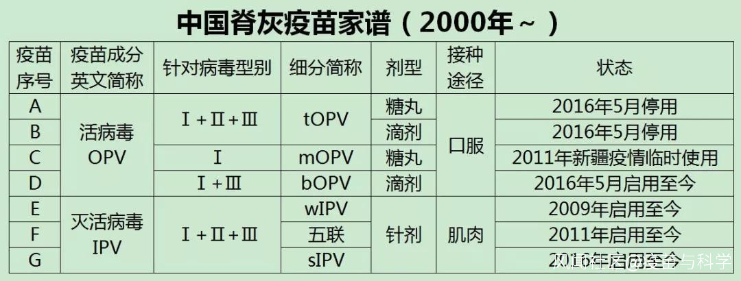 首先必須熟悉我國使用過的脊灰疫苗種類,一共有7種,有圖有真相,表格加疫苗實物來解釋。