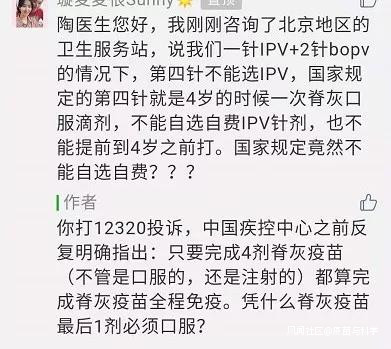 最後,我要提醒家長們:目前的規定下,IPV只能用於替代1+3程序或者2+2程序裏的bOPV,想自費再多接種1~2劑IPV增加對Ⅱ型病毒的保護力,這個非常困難。科學上,陶醫生認可這種做法,但除非國家明示允許,否則接種醫生不太可能同意這樣做。