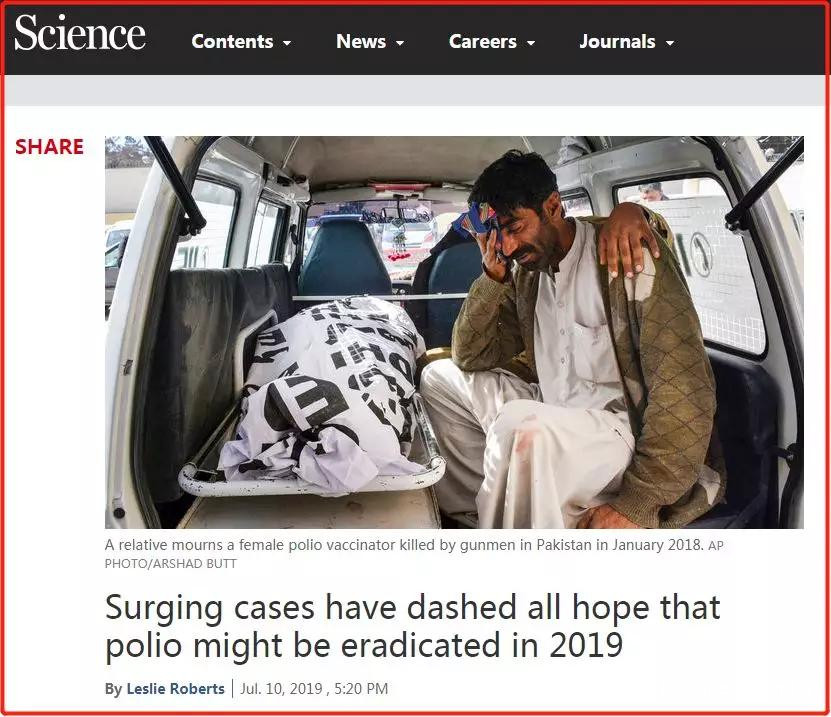其實,全球消滅脊灰進展也很不樂觀。著名的Science網站在7月10日發佈最新的文章稱:激增的病例使2019年根除脊灰的希望破滅。