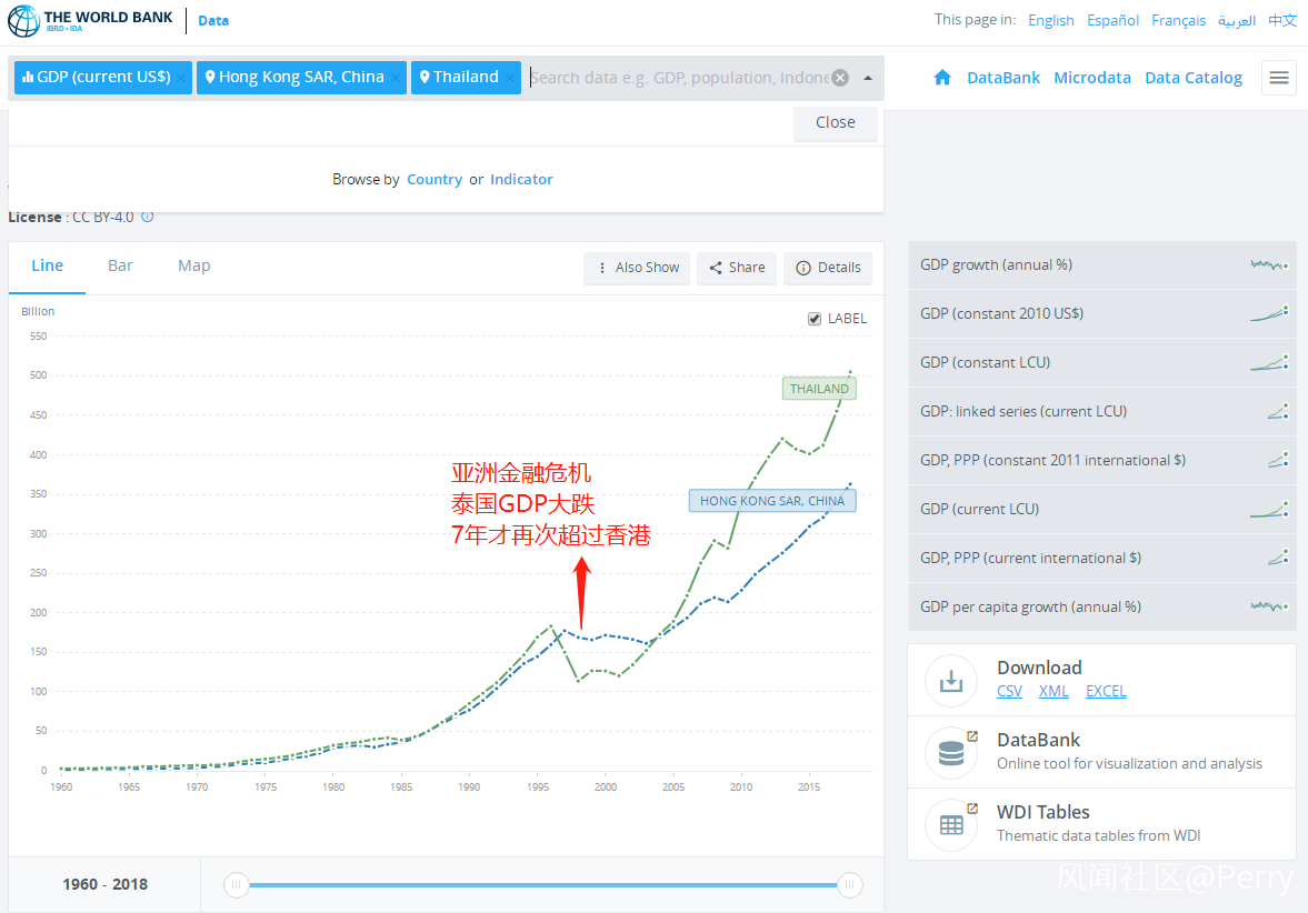 我們以98年亞洲金融危機為例,還是用世界銀行的數據,來和其他幾個亞洲地區對比。
