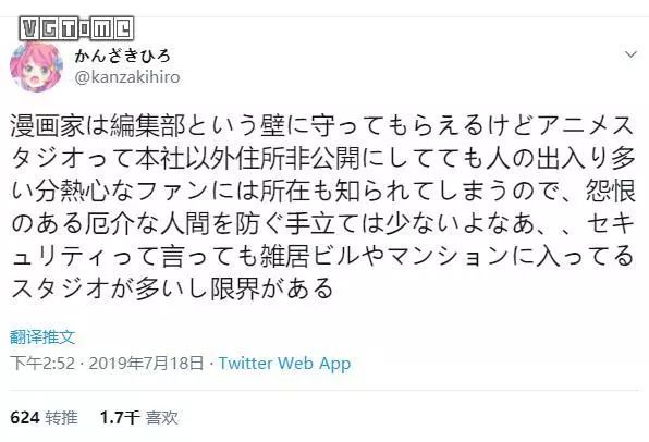 漫畫家還有編輯部這道牆擋着,可動畫工作室來往人員出入多,就算不公開總部以外的辦公地址,熱心粉絲也總會知道具體所在,所以很難有辦法防範心懷怨恨的麻煩人物。就算加強安保,很多動畫工作室都設在雜居的大樓或公寓,這方面能做的很有限。——動畫師かんざきひろ政治界