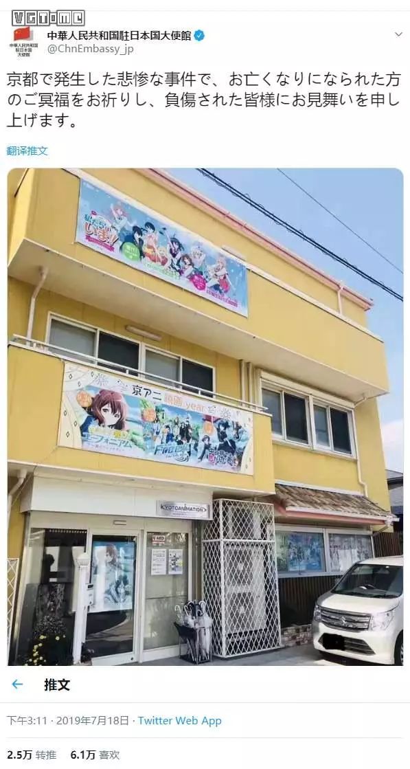 對於在京都發生的悲慘事件,我們祈禱遇難者們的靈魂安息,並向受傷的人們表示慰問。——中華人民共和國駐日本國大使館