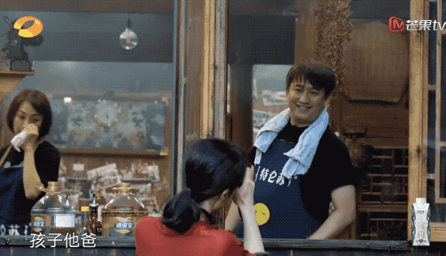 孫莉在屋外幹活,黃磊就在屋裏隔空獻殷勤:莉姐你真能幹,太能幹了!孫莉聽了,立刻回應一個甜蜜的傻笑。