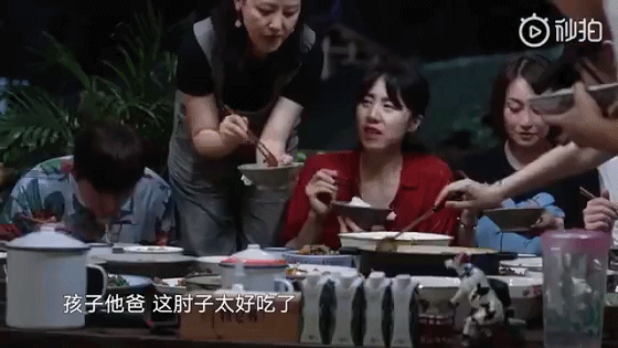 “孩子他爸,這肘子太好吃了。”“回家我就給你燉。”