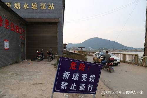 17日傍晚,一輛警車堵在洋塘河壩橋東頭,裏面並沒有人。摩托車不斷從壩橋上經過,採砂船堵塞的正上方橋面立着標牌,提醒人們迅速通過不要逗留。洋塘水輪泵水電站並沒有人值守,乾旱時,其會抽取洣水,通過高高架設、已經嚴重老化的渡槽,將水送入農田。