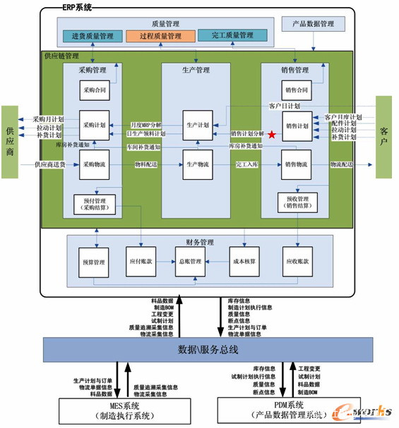 e-works的黃培博士出品的這張圖很好的反映了工業企業初步數字化的一個樣子。但是還是從管理層出發。現在的工業互聯網要求大家從底層出發。下圖屬於“雖不中,亦不遠矣。”數據服務總線是個臨時過渡,將來就是走向基於工業互聯網架構的工業大數據平台。