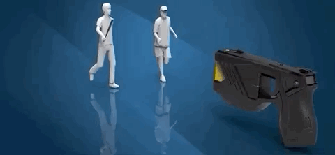 泰瑟槍是目前應用最為廣泛的電擊槍,雖然叫槍其實裏面並沒有真正的子彈,它是靠射出的帶電“飛鏢”來制服不法分子。原理是通過高壓氮氣來推動飛鏢發射,當飛鏢刺入目標衣物並勾住皮膚時,通過兩根絕緣銅線將高壓電流傳遞給鏢頭,令犯罪分子瞬間渾身肌肉痙攣,喪失攻擊能力,通常的有效射程為5至7米。