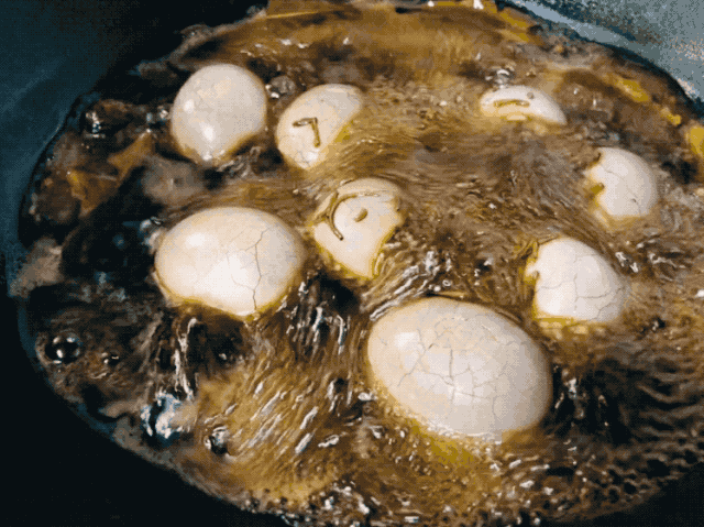 下茶湯煮之前,要先煮熟雞蛋過冷水敲出網紋哦 | 拍攝 豬廟餅