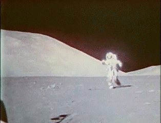 ▲ 宇航員哈里森·施米特(Jack Schmitt)以彈跳式步伐走向月球車