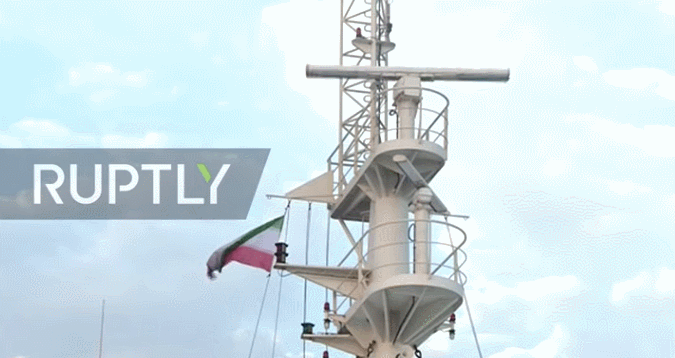 (“史丹納帝國”號油輪上懸掛着伊朗國旗。圖源:RT)