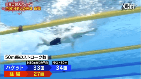 連孫楊本人也説,自己最大的武器就是衝刺時候的手和腿,從而控制每次的划水效果和劃幅。
