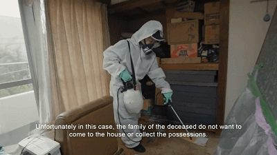其實,之所以會成立這樣一個公司,是因為過往的一件事對他影響很深。增田説道曾經有一個對他很好的鄰居婆婆,婆婆去世後,家人因為覺得清理時會睹物傷心,所以不想去清理婆婆的家。可是,總要有人去做這件事,對於死者來説,這不僅僅是清理房間,或許也是死後最後的一份體面。於是,在千千萬萬種工作中,增田選擇了做這個,一個很多人可能都不會想要去做的工作。
