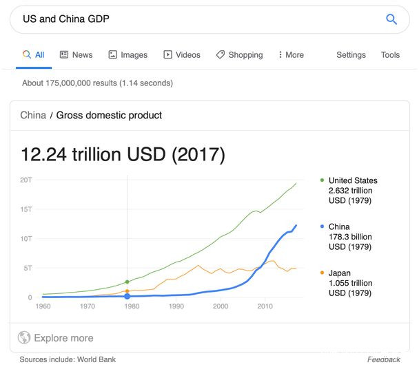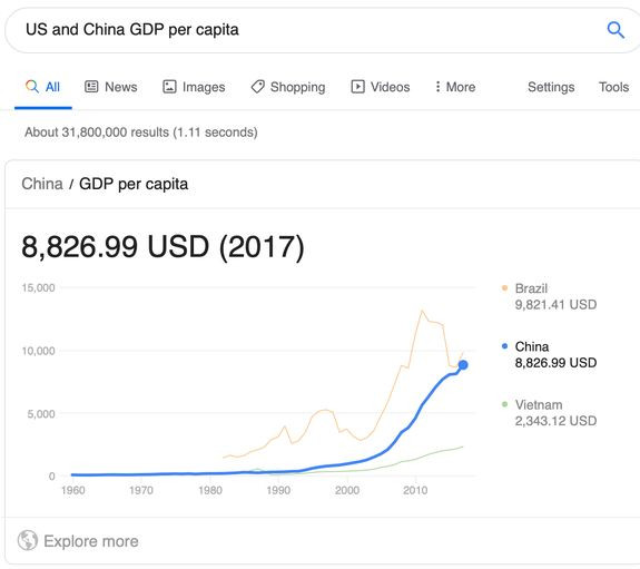 ▲ 谷歌甚至拒絕比較美國和中國之間的人均GDP。