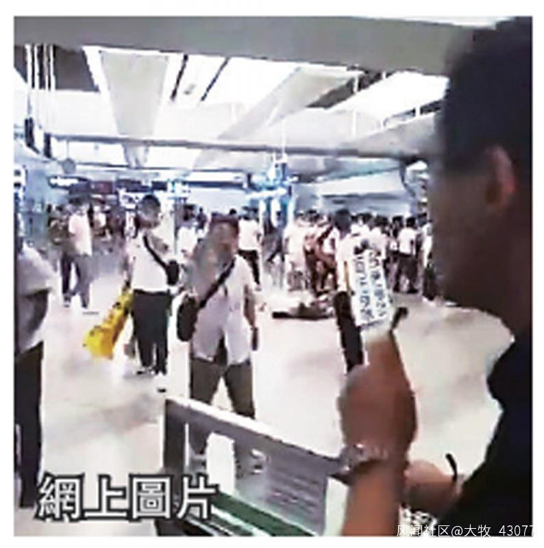 “大家唔好退,一退就追入來!”林卓廷在片段中,繼續呼籲黑衣羣眾不要離開,又號召羣眾不停叫口號,然後有黑衣人高呼:“入嚟打呀!”林並無制止,更狂言説:“你哋(白衣人)班X街!全部唔好走!警察嚟緊,全部企喺度!”(見圖)對峙局面歷時十多分鐘,其後有黑衣人拿起滅火筒噴發泡沫,現場陷入混亂,白衣人衝入閘內反擊,林卓廷見勢色不對,即混入人羣中逃走,過程在網上直播。畫面所見,林手執一把長傘,退入列車內,黑、白衣人雙方手持物件互打。