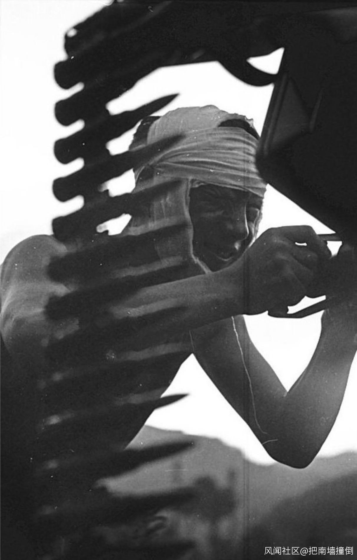 14107行動中,負傷的火力組戰士堅持不下火線,使用高機朝越軍猛烈射擊