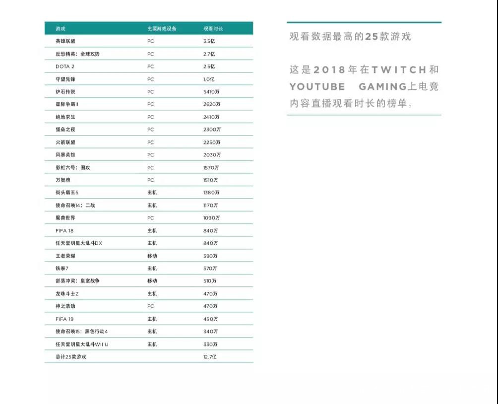 據Newzoo和體育產業生態圈聯合發佈的《2019全球電競產業報告》顯示,2017——2018年,FIFA已經從遊戲觀看時長的25名上升到16名,而且是唯一一款在電競內容直播排行榜上有兩款不同版本都進入觀看時長前25名的遊戲,如果將FIFA18和FIFA19兩者的觀看時長相加,總時長將突破1000萬小時,排名將來到14名的位置。