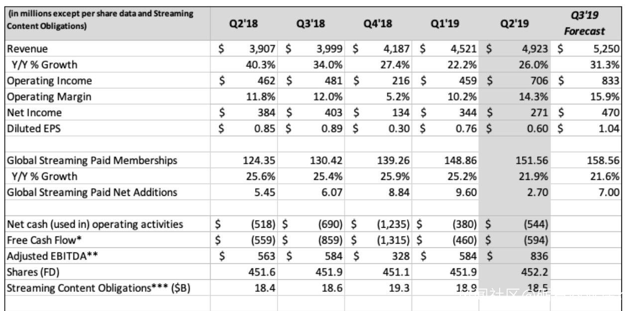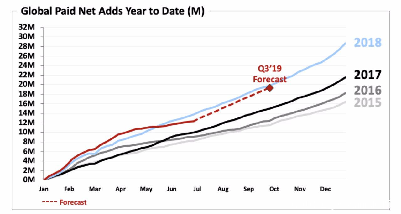 第三季度的前兩週,由於大量影片的上映,奈飛的表現強勁。對於流媒體來説,優質內容的拉新能力是毋庸置疑的。從《延禧攻略》的千萬級會員帶動,到優酷最近的《長安十二時辰》熱播撬動平台翻身,優質內容的影響力不容小覷。因此,奈飛也樂觀估計,在第三季度優質內容的影響下,在第三季度美國的付費會員可以轉跌為漲,並對第三季度做出700萬會員增長的預測。