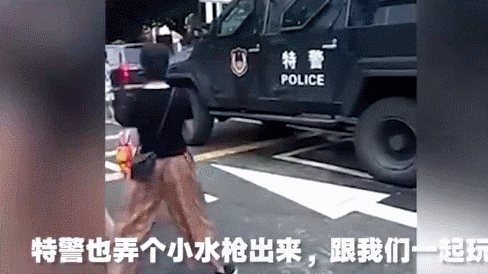漸漸地,當地特警們難耐獨坐車中的寂寞,尋來了幾支小水槍,通過“裝甲車上的小窗”向車外的人羣“射擊”,一射擊完又關閉這些“小窗”擋住了一羣小朋友的圍攻,這讓在一旁只能露天射擊的消防隊着實羨慕,儘管手中的傢伙什口徑大,但自己卻毫無掩護只能陷入來四面八方的火力。