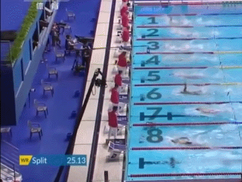 然而“甲魚”終究沒有讓賽前的豪言落空。憑藉強有力的衝刺,他以52秒43的成績率先觸壁。領先第二名雷洛夫的優勢,僅僅有0.24秒。
