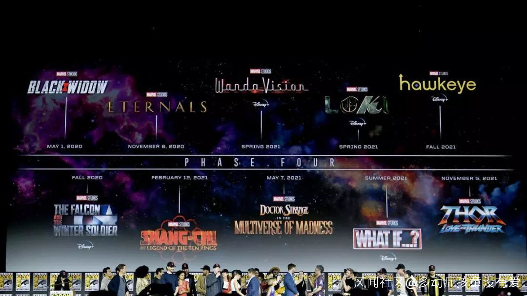 漫威影業在7月20日的聖地亞哥國際漫展(SDCC)上公佈了第四階段的十部作品,其中有五部電影,五部在迪士尼流媒體平台上播放的劇集。