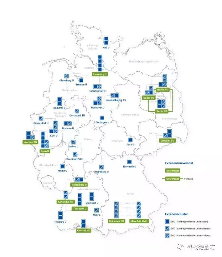看一下11所大學在德國的分佈圖,更加清晰明瞭。