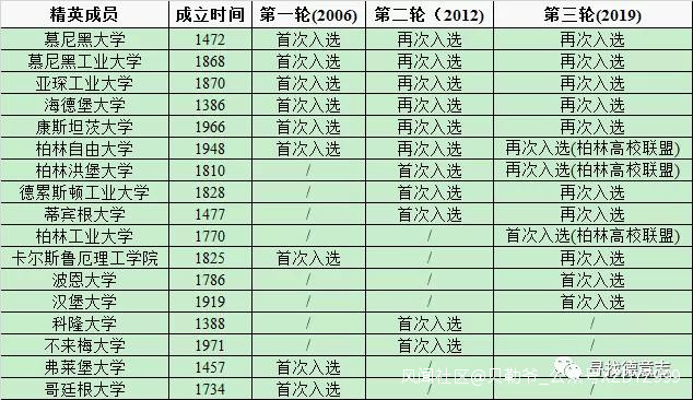 2019至2026年“精英大學”共11所,其中包括1個大學聯盟,將獲得每年1.48億歐元資助。(下表:按字母順序排列)