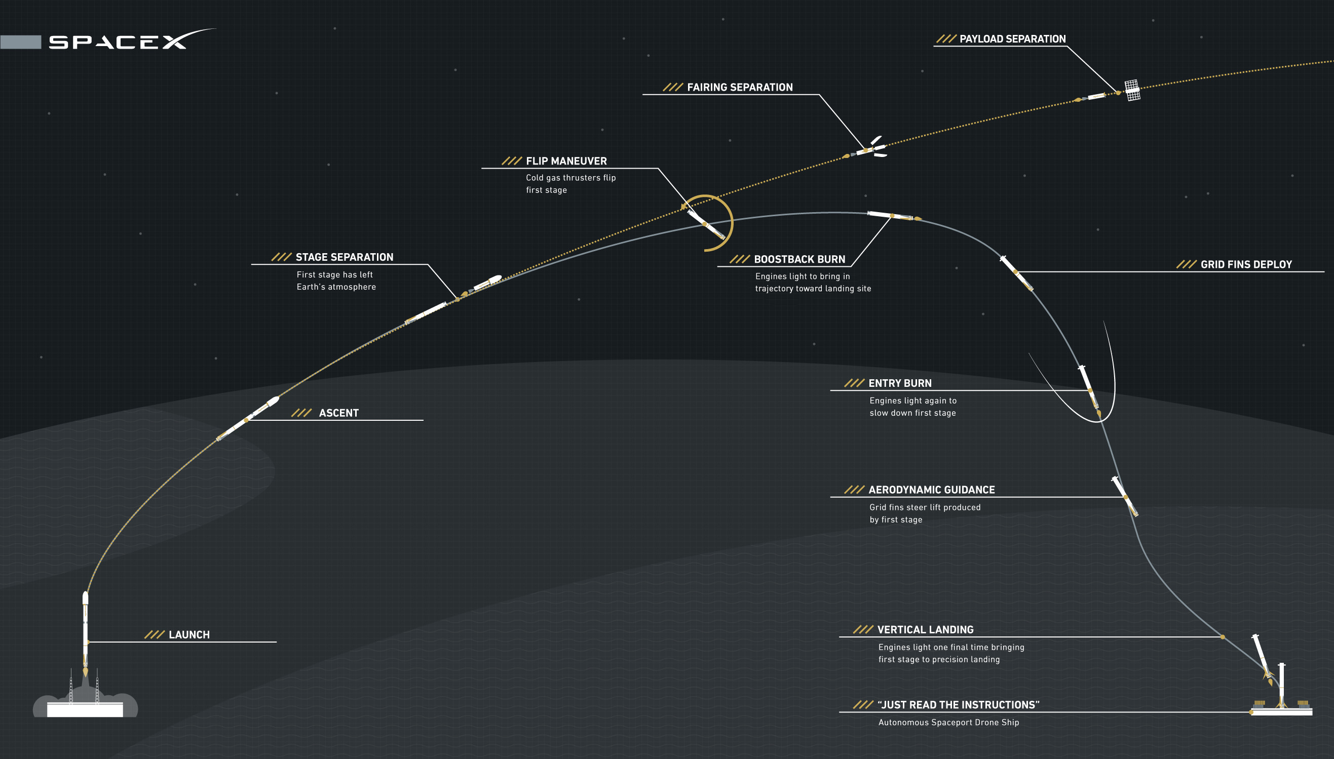 SpaceX公司發佈的獵鷹9任務剖面,可見第二級沒有回收